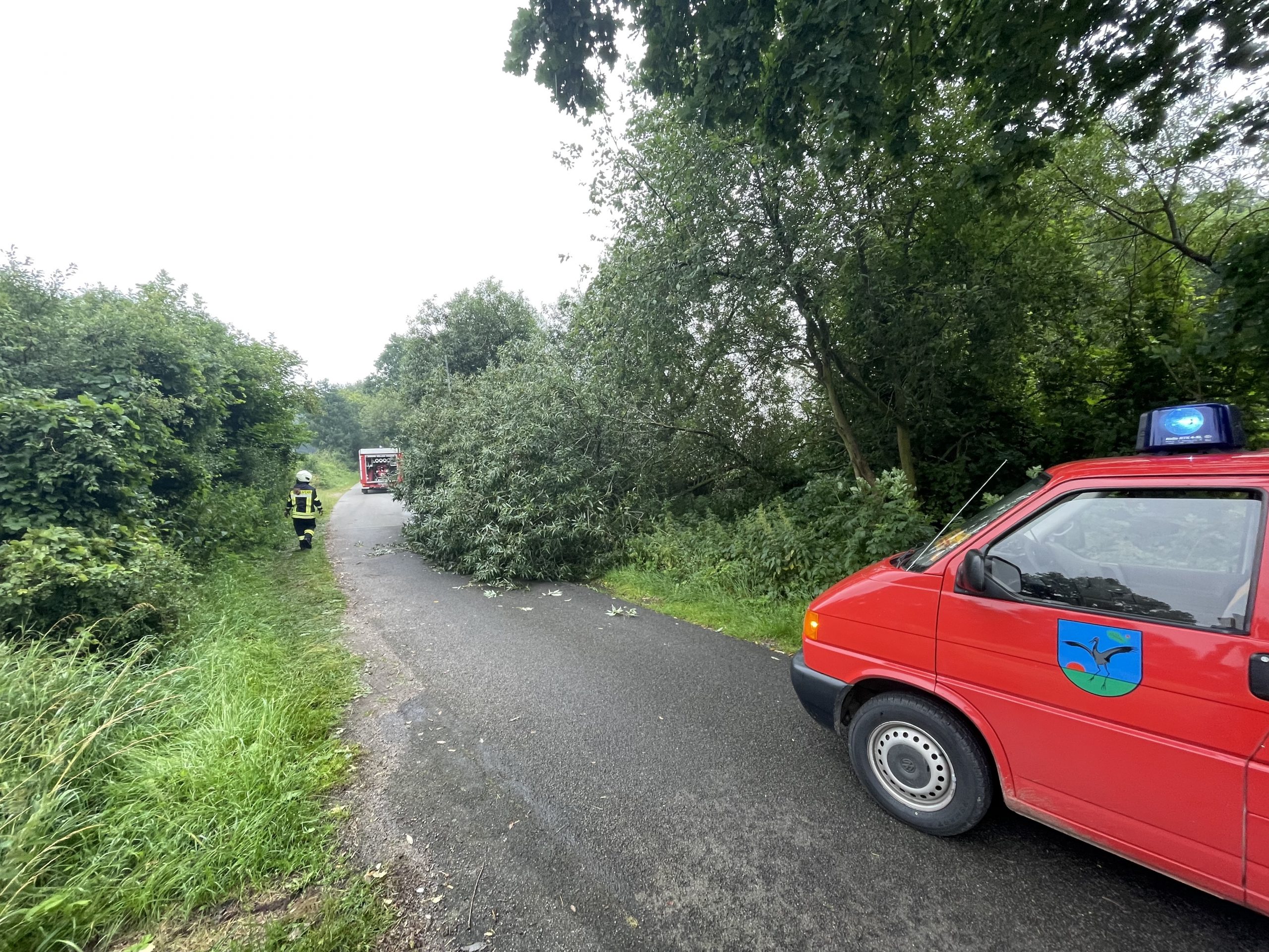 Die Schossiner Feuerwehr rückte zu einem umgestürzten Baum als Folgeschaden heftigen Windes aus.
